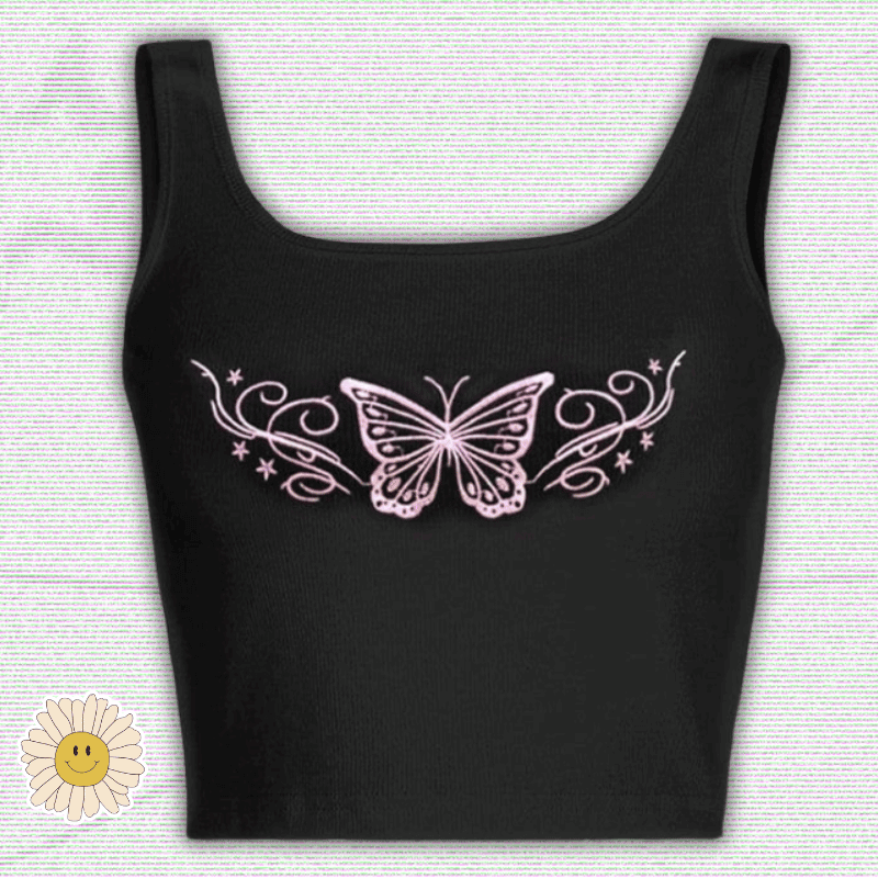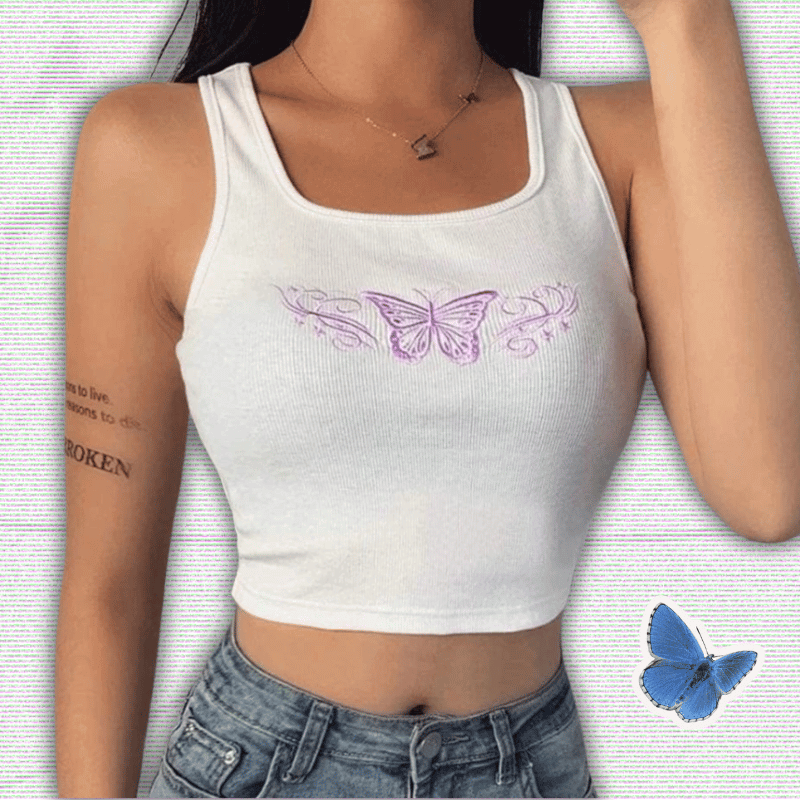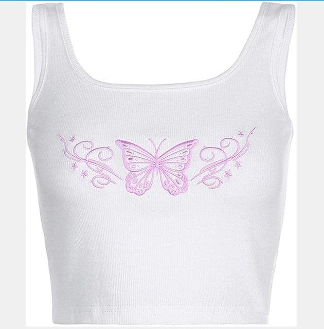 Add a flutter of style to your summer wardrobe with our Y2K Tank Top, your passport to a vibrant and eye-catching ensemble. Offering playfulness with its butterfly print, chic with its round neck and cropped style, and comfort with its lightweight, breathable material perfect for sunny days and warm nights, this top ensures you’re the embodiment of youthful vitality, transforming every outing into a fashion highlight.